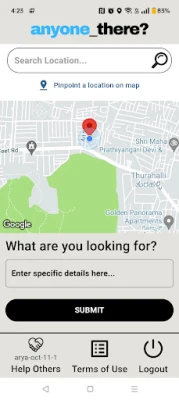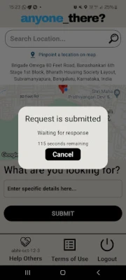 Sometimes people can't find the status of a place online and sometimes there might not be a phone number available to get more information about a location. Well, not anymore. For example, the status of a store or a restaurant might be displayed as open online, but in reality, the restaurant might be closed. In cases like this, if someone wants to know if a store or a restaurant is actually open, or if they want to know if a particular item is available somewhere, all they have to do is just place a request on the anyone_there app providing sufficient details, and someone near the location can volunteer to help.