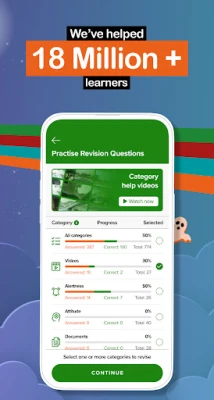 Including the NEW DVSA video clip scenarios. Car drivers can practise multiple-choice questions based on a short video - Just like the real test. Track your progress so you know when you’re driving test ready to sit the official Theory Test!
