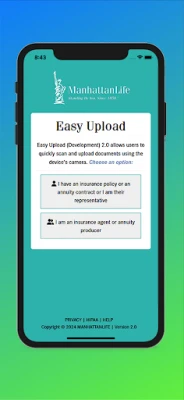 This app works well for both Agents and Policyholders. Go to https://easyupload.manhattanlife.com for more details.