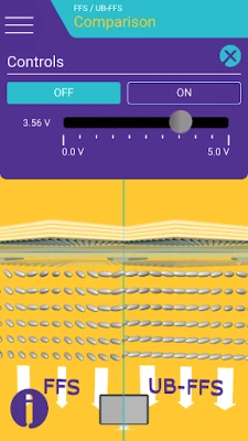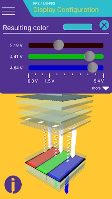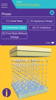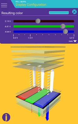 Surf through different layers and technologies and stop where you would like to learn more. Clear texts provide information on structure, pixel profile, functions, and much more. With the switching function you are in control: Define different voltages and experience how they affect the structure of the liquid crystal layer and the color effect.