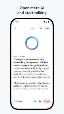 Open the app and start talking. The Meta AI app (previously the Meta View app) is designed for natural back-and-forth conversations, so you can get what you need faster and more easily. Meta AI* can learn your preferences and interests to give you more helpful answers, whether you’re on the go or getting work done. It can also help you create, edit and restyle images and videos.