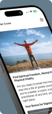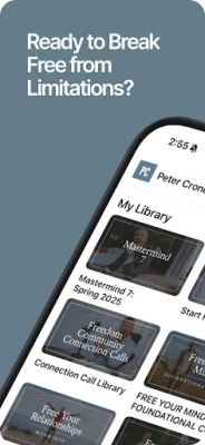 This app is your gateway to freedom, offering on-the-go access to the wisdom of Peter Crone. Whether you're part of the Freedom Membership, the Mastermind Program, or both, you'll find everything you need to step into a life of possibility.