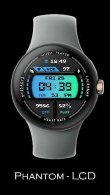 Phantom - LCD watch face features : 12h/24h Digital time Steps and Power reserve information Heart Rate information High quality and original design AOD Mode