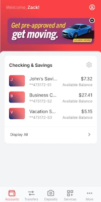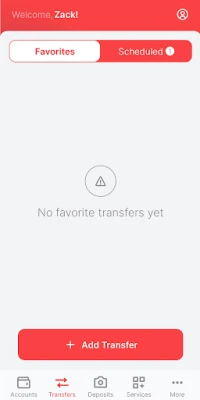 - Transfers: account to account, scheduled, pending ACH and check withdrawal transfers available