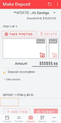 - Mobile Check Deposit: simply take photos of checks to deposit them.