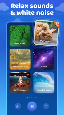 A large selection of all kinds of sounds to relieve stress, improve sleep quality, experience all phases of sleep, get peace of mind and plunge into deep sleep. Relax sounds for sleep around us can act as irritants during sleep and meditation sounds. Therefore, sleep melodies and sleep nature sounds relax and sleep are ideal. Relaxation for sleep is an important step before going to bed. Therefore, soothing relaxing music, white noise, meditation and sleep timer screen off sounds are becoming an integral part of everyone's life.