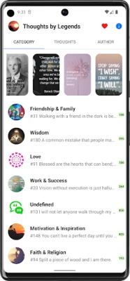 #1. Friendship & Family #2. Wisdom #3. Love #4. Work & Success #5. Undefined #6. Motivation & Inspiration #7. Faith & Religion #8. Truth & Peace #9. Politics & Leadership #10. Humour #11. Knowledge & Education #12. War & Evil #13. Life & Age #14. Fear & Death #15. Kindness & Happiness #16. Failure #17. Music & Art #18. People & Humanity