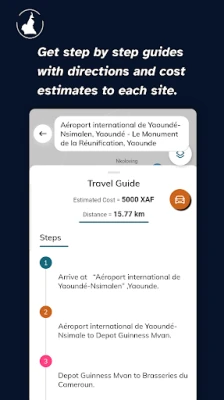 Get real-time travel guides to your location of choice anywhere in Cameroon, with its descriptions, distance, time, and cost estimates to get you going all set and certain to have the best experience with TourCMR.